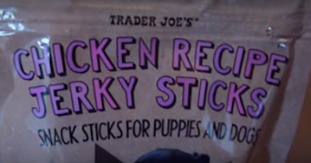We have a 5 lb Malti poo and have been giving her the chicken jerky strips from TJs. She has been so sick the past two days. Throwing up and pooping all over. Ill never buy from TJs again.