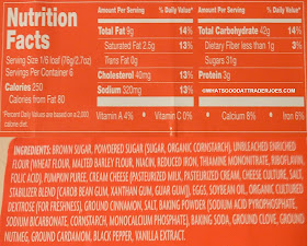There may come a day when I stop reviewing pumpkin spice products. To be honest, I wouldn't be completely heartbroken if that fateful day arrived soon. But before that happens—before I stop reviewing TJ's profound plethora of pumpkin products—two things will have to happen: Trader Joe's will have to stop releasing new pumpkin products OR I'll have to hit a looong streak of pumpkin nastiness, AND Americans will have to stop Googling "trader joes pumpkin spice" in such enormous numbers. Once those things come to pass, I shall hang up my hat as this blog's designated pumpkin and pumpkin spice reviewer extraordinaire.