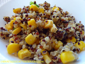 I was actually surprised at how many times the WG@TJ's team has seen quinoa as a prominent ingredient in Trader Joe's products. Just check out the "Search This Blog" results: salads, veggie burgers, tortilla chips, pasta, burritos, popcorn chips, and even chocolate candies that flaunted quinoa. But we've never really explored quinoa as the main attraction of a dish.