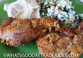 All in all, the chicken still went well with Trader Joe's Apocryphal Pita and Roasted Garlic Hummus, as well as some tabbouleh. The meal wasn't unsatisfying at all, despite the product's shortcomings. I think I'd have enjoyed it far more if I'd never had good shawarma and lacked any expectations. It could be that TJ's offering mimics Turkish shawarma or some other regional variant of the Middle Eastern dish, while I'm primarily only familiar with the Lebanese version.