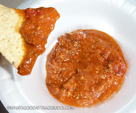 Sonia liked it as much as I did, immediately spouting positive remarks about the savory flavors in this tomato, onion, and red bell pepper-based condiment. It's a win—a sure contender for the Pantheon had it been full of crunchy pepitas. I'm not sure if it's been done before, but how about a salsa with a cellophane baggie of dry pepitas that you mix in when you serve it...? I guess you could always purchase a bag of pumpkin seeds separately and create a salsa worthy of even more praise. $2.99 for the jar. Probably a repeat purchase for us.