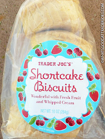 Sonia remarked that she's had biscuits that taste too salty or too much like baking soda. I'm not sure I know exactly what she's talking about, but I agree with her that these pastries are pleasantly free of such flavors. They do blend well with fruit and whipped cream, as the packaging claims. I wouldn't say they're a perfect substitute for freshly made shortbread, but they're adequate for this not-completely-fresh makeshift version of the dessert that we concocted yesterday.