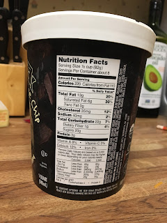 But the fudge chips? They're pretty good! Something seemed a little different yet familkiar about them, that I couldn't place until scanning the ingredients...coconut oil! Sandy has made some desserts made mostly from cocoa powder and coconut oil and some other stuff too, I'm sure, that these chips kinda tastelike. Coconut and chocolate almost always go great together, and even though it's pretty subtle here, the chips (of which there are plenty) are fairly choice and help pick up the rest of the dessert.