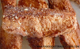 I'm trying to think of what these remind me of. They're not quite like shortbread cookies or Dunkin Stix or Donut Sticks, although they are highly dunkable. There's another product out there called "French Twists," and I'm pretty sure that's what TJ's was going for here. I've never had those...so that's probably why these don't feel familiar.